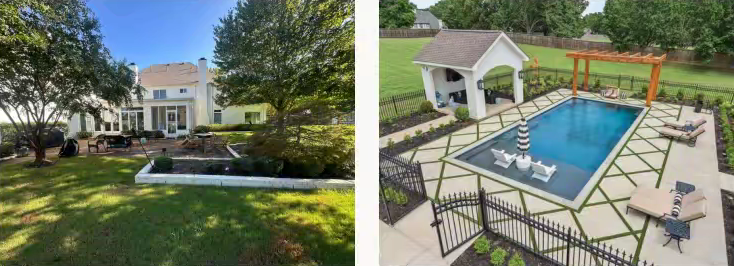 We are excited to share a recent project we completed in collaboration with Cantrell Custom Pools. This backyard transformation was a comprehensive endeavor where we were hired to design the entire space. The project included various elements to create a cohesive and luxurious outdoor living area. Notably, the homeowner's father contributed to the construction by building the pool house and pergola, adding a personal touch to the project.
